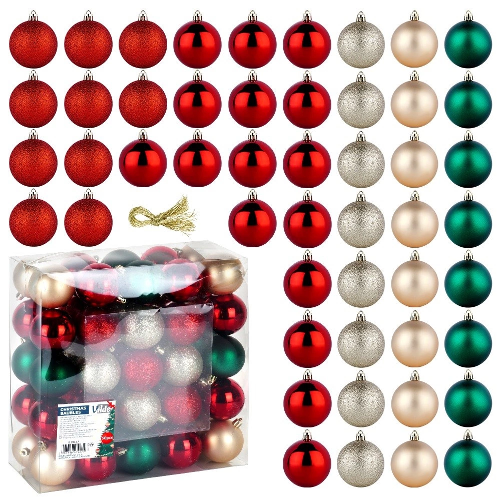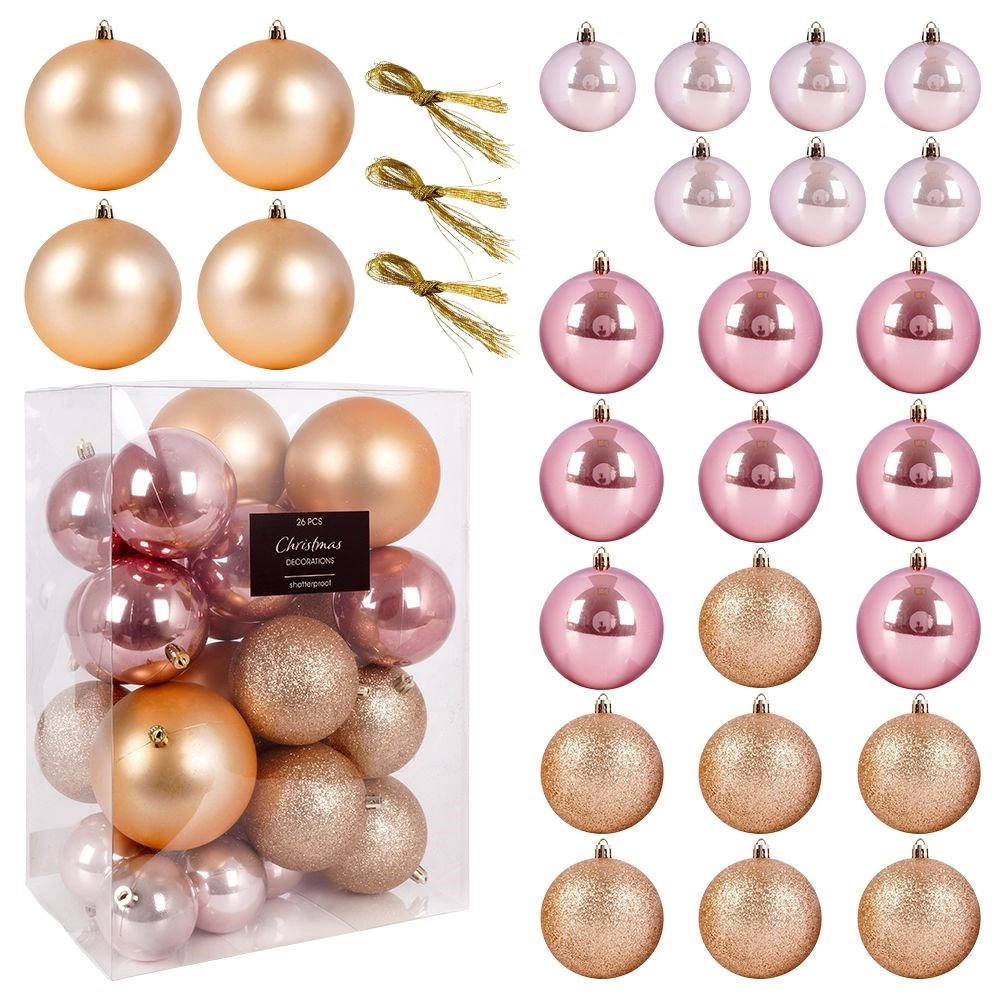 Birajte među omiljenim materijalima: stakleni ukrasi s finim dekorom, nerazbitne plastične kuglice i lopte prikladne za obitelji, drveni ukrasi i papirnate zvijezde za prirodan izgled. Dostupni su setovi ukrasa u bojama crvena, zlatna, srebrna, bijela, šampanjac ili plava te u završnim obradama mat, sjajna, šljokičasta i s bisernim efektom. Različite veličine i oblici, od mini do XXL, omogućuju ukrašavanje malih i velikih borova i postizanje ujednačenog izgleda.