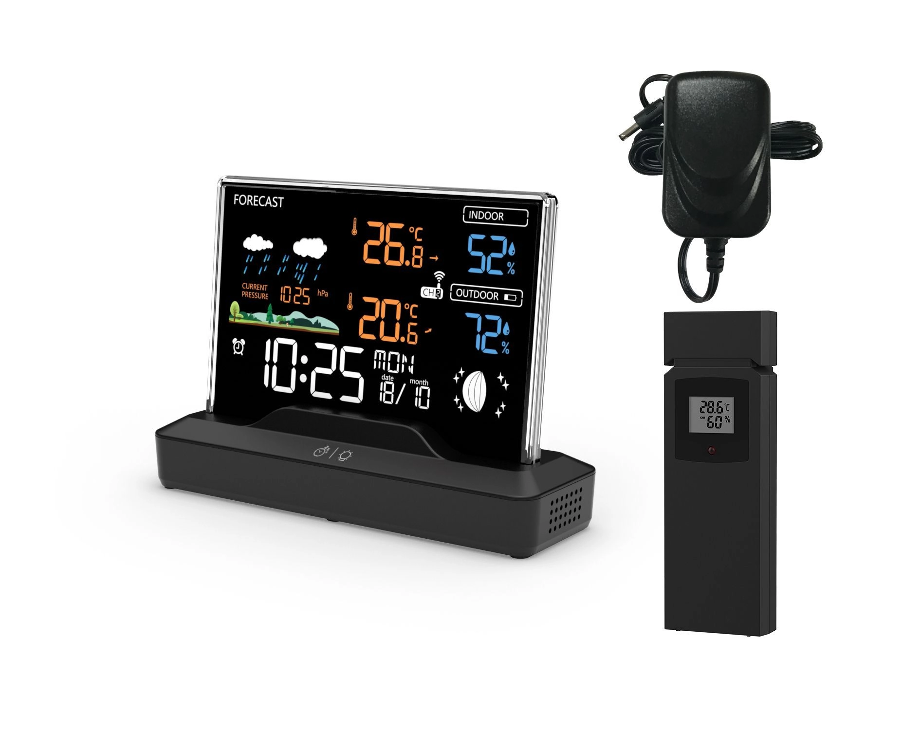Meteorološke stanice s Wi‑Fi i bežične meteorološke stanice nude vremensku prognozu, barometar za mjerenje tlaka zraka, higrometar za vlagu te grafički prikaz trendova. Dostupna je povijest mjerenja, strelice trenda, zapis minimuma i maksimuma, alarm temperature i vlage, indikator zone komfora te izračun rosišta. Kod naprednih setova ne nedostaju kišomjer i mjerenje vjetra (anemometar), radijski upravljano vrijeme DCF, budilica, kalendar i zaslon u boji s pozadinskim osvjetljenjem ili praćenje podataka u aplikaciji.