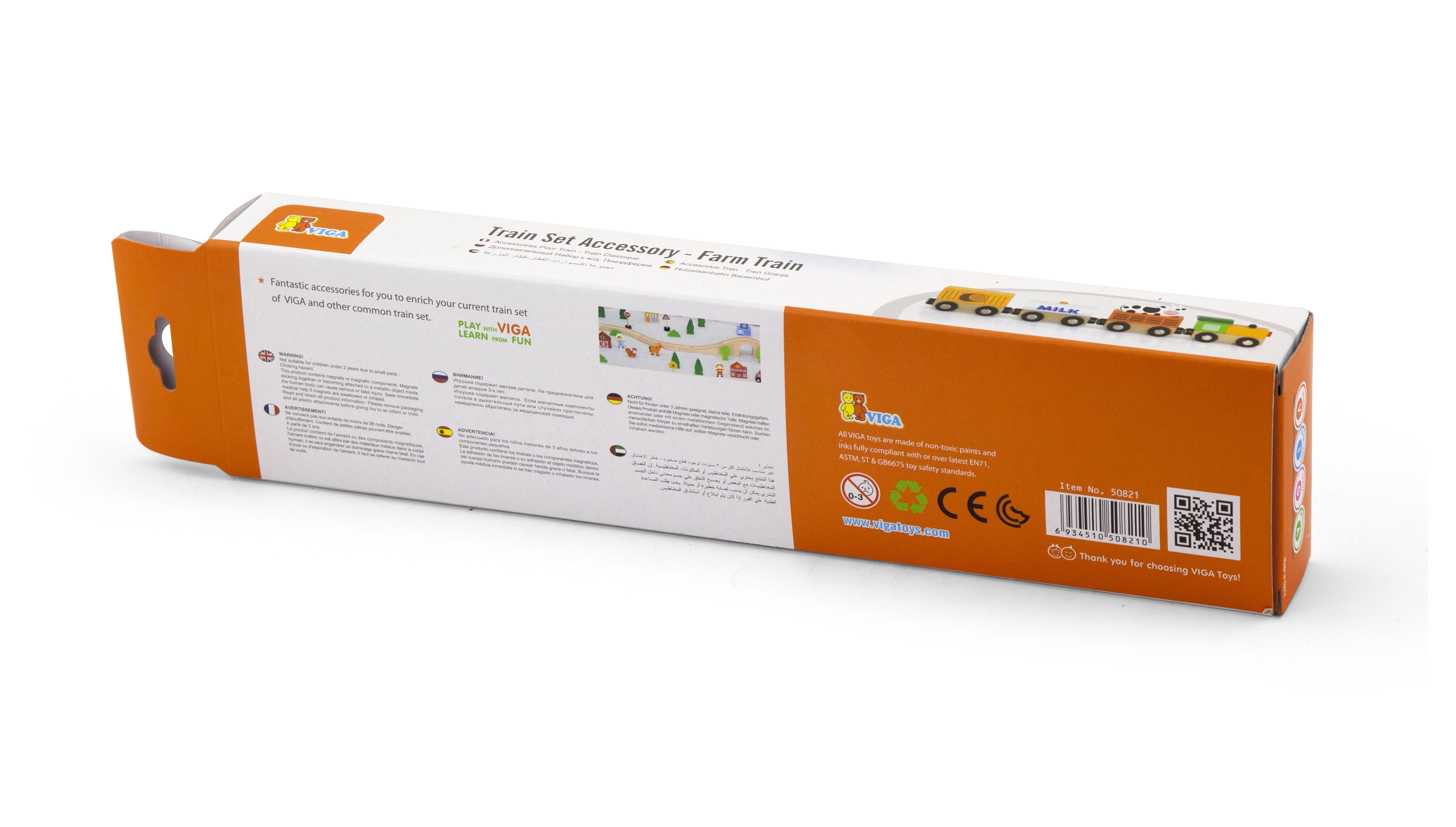 Materijali i izrada naglasak stavljaju na kvalitetu i sigurnost: glatko brušeno drvo, izdržljive plastične dijelove, magnetne spojke i stabilna podvozja za glatku vožnju. Sustav tračnica je modularan, kompatibilan i lako proširiv – ne nedostaju drvene tračnice, skretnice, mostovi, tuneli, kolodvori niti ostala oprema za realistično željezničko postrojenje.