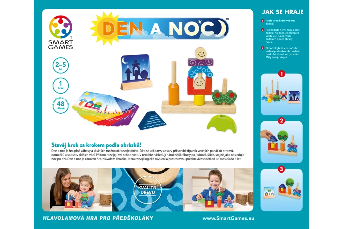 Pažljiva izrada od kvalitetnog drva, često s glatkim rubovima i bojama na bazi vode, osigurava sigurnu i izdržljivu igru. Prirodni, ekološki materijali su ugodni na dodir i potiču taktilnu percepciju; promjenjiva razina težine vježba prostornu predodžbu, koordinaciju oko–ruka, pamćenje i strateško razmišljanje. Ove didaktičke i edukativne igre često se temelje na Montessori principima i donose kreativne izazove za male i velike.