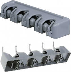 Uvedite red jednom zauvijek. Ovaj zidni držač pomoći će vam učinkovito organizirati alat, sredstva za čišćenje i sportsku opremu. Samostežući prihvati sigurno drže štapove različitih promjera, dok praktične kuke služe za krpe, rukavice i druge manje dodatke. Kompaktna širina odgovara i manjim prostorima.
