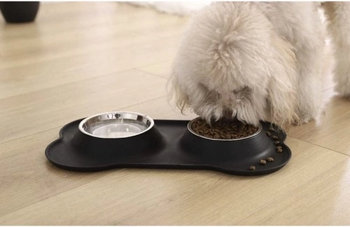 Priuštite svom ljubimcu udobno i čisto hranjenje. Dvije inox zdjelice zapremnine 2 × 450 ml umetnute su u fleksibilnu silikonsku podlogu koja hvata prolivenu vodu i prosutu hranu. Podloga u obliku kosti ima povišen rub i protukliznu obradu, pa ostaje na mjestu i pri entuzijastičnom gostovanju.