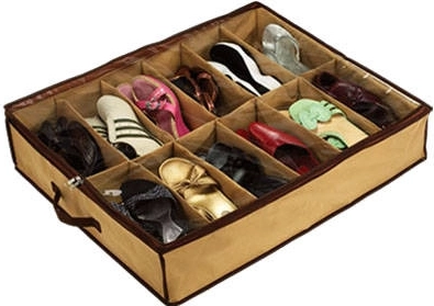 Lagana konstrukcija bez ojačanja štedljiva je prema prostoru, a ručke olakšavaju prenošenje. Organizator ima 12 zasebnih pretinaca za parove obuće i može se koristiti i za igračke, remene, čarape ili donje rublje. Neutralna bež boja s smeđim rubom uklopit će se u svaki interijer.