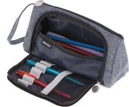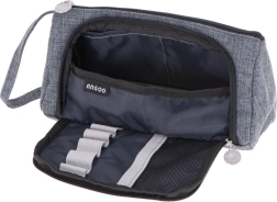 Univerzalna 3-u-1 pernica u elegantnoj sivoj boji služi kao školska torbica za pribor, kozmetička torbica i putni organizator. Nudi dva pretinca, praktične džepiće i elastične petlje za savršen pregled. Zahvaljujući izdržljivom materijalu, patentu i remenčiću za zapešće idealna je za školu, putovanja i ured.