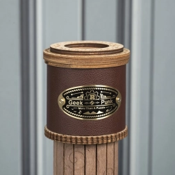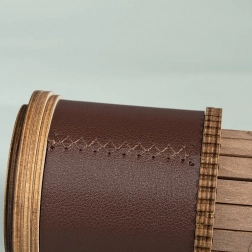 Drveni tubus s kožnim trakama i metalnom pločicom daje modelu vintage izgled, koji će ukrasiti svaki interijer.