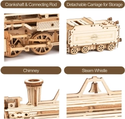 Uživajte u zabavi i kreativnosti s 3D drvenim modelom Prime Steam Express. Ovaj povijesni vlak potječe iz 1860. i dio je serije ROBOTIME ROKR Model Vehicles Series. Svi dijelovi su pažljivo izraženi laserom od 2 mm debele lipove šperploče. Za sastavljanje nije potrebno ljepilo, a model sadrži realistične detalje, kao što su parna zviždaljka, kotači s osovinama i odvojivi tendr.