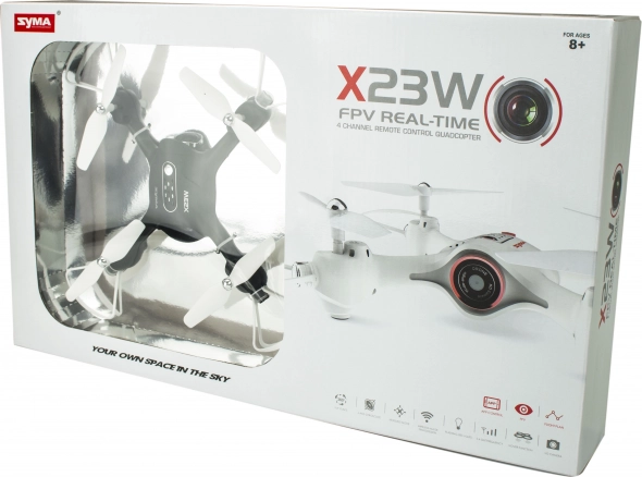 Opremljen je 6-osnim žiroskopom, što osigurava vrlo stabilan let te čini model okretnijim i spretnijim. Osim toga, ima integriranu kameru s online prijenosom videa na zaslon vašeg telefona i snimanjem u kvaliteti 640×480p. Možete snimati videozapise i fotografije s vaših zračnih avantura! Model se može upravljati isključivo telefonom, a moguće je čak i programirati rutu kojom će model zatim sam letjeti. Sve putem mobilne aplikacije. Ne samo pri lošijim svjetlosnim uvjetima, cijenit ćete LED osvjetljenje kojim je Syma X23W opremljena. Ovaj dron zabavit će cijelu obitelj, a zahvaljujući svojoj veličini možete ga ponijeti sa sobom posvuda!