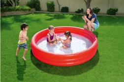Pretvorite svoje dvorište u omiljeno ljetno mjesto za djecu. Okrugli napuhavajući bazen visine 33 cm i kapaciteta oko 480 l pruža sigurno osvježenje i prostor za vodene igre. Tri jednake zračne komore povećavaju stabilnost i udobnost.