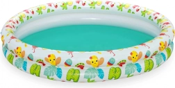 Set sadrži nafukavajući bazen, plivaći kolut i plažnu loptu – sve usklađeno u razigranom tropskom dizajnu. Djeca odmah imaju sve pri ruci za sigarne vodene igre.