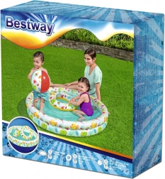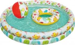Sigurnost i izdržljivost osiguravaju kvalitetan, testirani vinil i dvije odvojene zračne komore u obliku prstena. Set upotpunjuje plivaći kolut (idealno za djecu 3–6 godina) i lagana plažna lopta, koji potiču sigurnost u vodi i motoriku.
