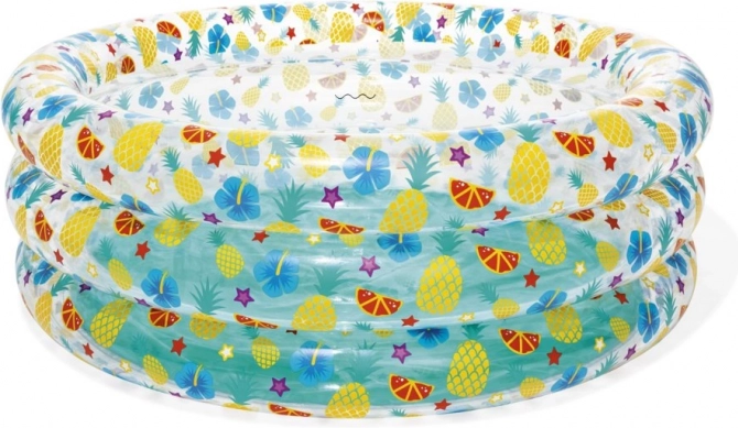 Razveselite djecu ljetnim osvježenjem u nafukavajućem bazenu s veselim voćnim printom. Zahvaljujući promjeru od 170 cm i visini od 53 cm nudi dovoljno mjesta za igru, dok trokružna konstrukcija osigurava stabilnost, a mekano nafukavajuće dno udobnost. Bazen se lako napuhuje i ispušta, idealan je za djecu od 6 godina.