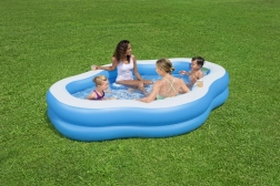 Nafukavajući bazen BESTWAY dimenzija 270 × 198 × 51 cm dizajniran je za relaksaciju cijele obitelji. Dva nafukavajuća prstena osiguravaju stabilnost, dok oblikovani zidovi i dva integrirana sjedala pružaju udobnu potporu leđima. Praktični držači za piće drže vaše osvježenje uvijek pri ruci, a prozirni prozorčić dodaje zabavni element za djecu.