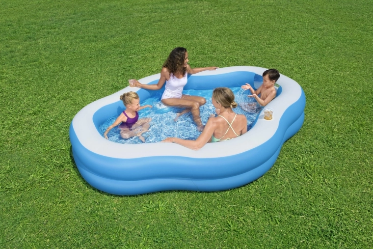 Uživajte u ljetu s prostranim obiteljskim bazenom BESTWAY koji nudi integrirana nafukavajuća sjedala, držače za piće i prozirni prozorčić za još više zabave i udobnosti. Izdržljiv vinil, stabilna konstrukcija i jednostavno napuhavanje/sklapanje čine ga idealnim bazenom za vrt za djecu i odrasle.