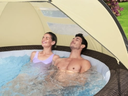 Ova nadstrešnica za hidromasažne kade pruža odličnu zaštitu i privatnost tijekom vašeg vremena opuštanja u vrtu. Sa ventiliranim prozorima koji osiguravaju slobodan protok zraka i jednostavnim sastavljanjem, idealan je dodatak za sve vrste Bestway hidromasažnih kada, osim modela St. Lucia i Vancouver.