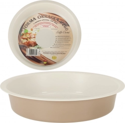 Ovaj okrugli kalup za pečenje s glatkim stranicama i dnom je izvrstan izbor za vaše kuhinjske potrebe. Dizajniran je za korištenje u plinskim i električnim pećnicama, ali nije pogodan za perilicu posuđa. Kalup nadopunjuje moderan dizajn u boji kave s mlijekom.