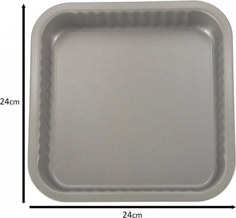 Neljepljivi kalup za pečenje dimenzija 24x24 cm pogodan je za plinske i električne pećnice. Izrađen je od kvalitetnog niskougljičnog čelika s neljepljivim premazom, zahvaljujući kojem se jela lako odvajaju od kalupa. Pogodno za pripremu tartova, pizza i zapečenih jela.
