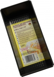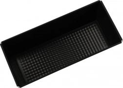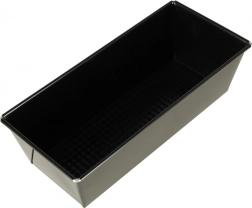 Ovaj crni pravokutni kalup izrađen je od niskougljičnog čelika s izdržljivim neprianjajućim premazom. Glatke stijenke i teksturirano dno osiguravaju odlično raspoređivanje topline i lako vađenje bez lijepljenja. Žicom ojačani kutovi pomažu zadržati oblik i pri čestoj upotrebi.