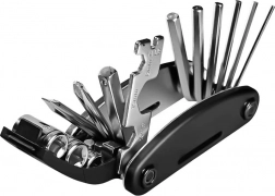 Ovaj multifunkcionalni set alata idealna je oprema za svakog biciklista. Zahvaljujući sklopivom dizajnu štedi prostor i možete ga imati stalno pri ruci – na izletima, na putu na posao ili tijekom treninga. Robusna izrada i pregledan raspored alata olakšavaju brzo podešavanje kočnica, volana i kotača.
