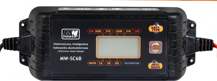 Punjač omogućuje odabir punjačke struje 1A / 3A / 6A (12V) i 1A / 3A (24V), pa se lako prilagođava kapacitetu baterije od 1,2 Ah do 180 Ah (12V) i do 90 Ah (24V). Integrirani sigurnosni elementi štite bateriju i uređaj: zaštita od prenapona, kratkog spoja i pregrijavanja s automatskim isključivanjem.