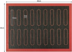 Silikonska podloga kombinirana je s staklenim vlaknima koja osiguravaju njenu otpornost na visoke i niske temperature. Neljepljiva površina eliminira potrebu za korištenjem papira za pečenje.