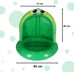 Živahni zeleni dizajn s velikim žabljim očima i napuhavajućim nogicama daje autentičan izgled. Uz to, pametna nadstrešnica štiti djecu od štetnog UV zračenja, što jamči duge sate sigurne igre u vodi.