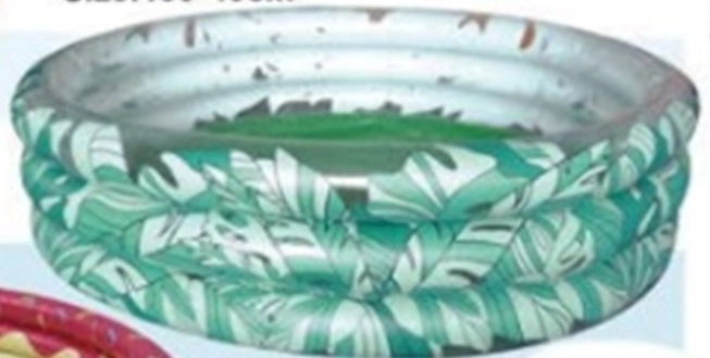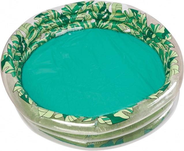 Ovaj prekrasan napuhujući bazen s grafikom zelenog lišća postat će predivna dekoracija vaše okućnice i mjesto nezaboravne zabave za vaše dijete. Zahvaljujući dimenzijama – promjer 150 cm, unutarnji promjer 135 cm – dovoljno je prostran za više djece.