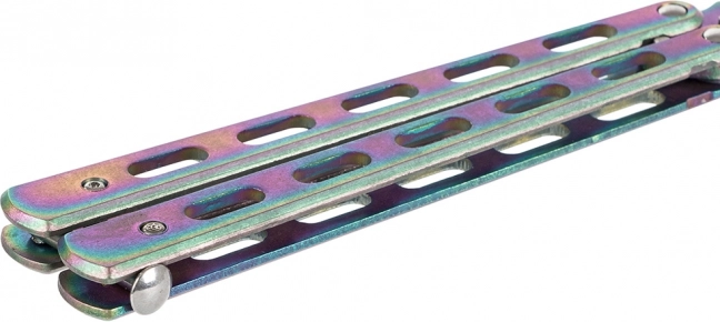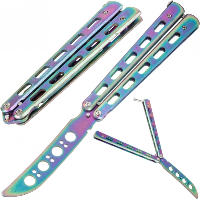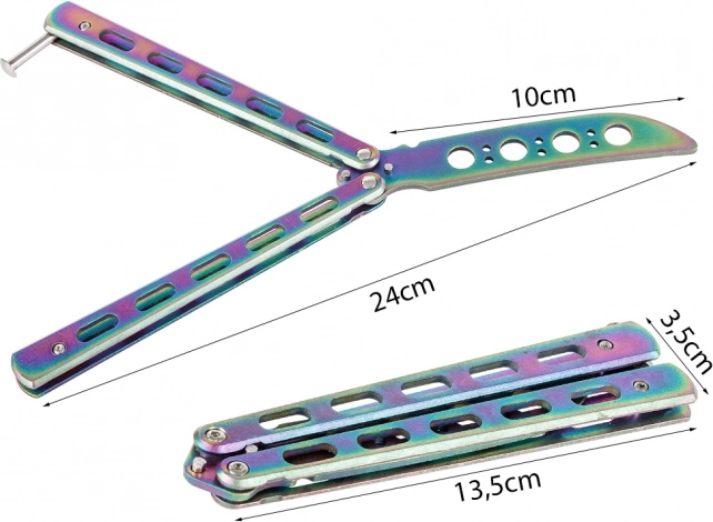 Otkrijte svijet trikova sa sigurnosnim trening nožem leptir. Ovaj nož ima tup oštricu za maksimalnu sigurnost tijekom vježbanja. Njegov kompaktni dizajn omogućuje jednostavno prenošenje, a stane u džep i opremljen je kvačicom protiv neželjenog otvaranja.