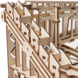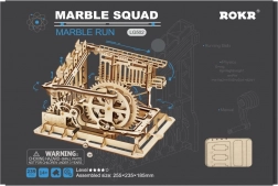ROBOTIME ROKR Marble Run Squad je detaljna 3D drvena puzzle koja oživljava pametnom mehanikom nakon sastavljanja. Okrenite ručicu i promatrajte kako čelične kuglice jure po ravnim i nagnutim stazama, prolaze kroz padajuća vrata i uspinju se podizačem. Model se ističe preciznim laserskim izrezima, stabilnom konstrukcijom te je izrađen od sigurnih, netoksičnih materijala.