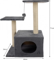 Zahvaljujući promišljenom dizajnu koji uključuje stupove od sisala i plišane površine, ova je grebalica idealna za grebanje, penjanje i odmor. Glavna prednost je udoban ležaj koji mačkama omogućuje opušten odmor i odličnu poziciju za promatranje. Dodana igračka potiče na lov i igru.