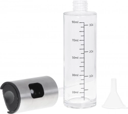 Izrađena od izdržljivih materijala, bočica kombinira sigurno staklo za hranu s plastičnim i nehrđajućim raspršivačem. Zahvaljujući praktičnoj ljestvici sa strane, uvijek ćete imati pregled nad količinom sadržaja.