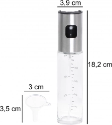 Ova bočica sa sprejem idealna je pomoć u pripremi hrane. Potpuno je prikladna za doziranje ulja, octa, sojinog umaka ili drugih tekućih začina. Jednostavno i precizno doziranje osigurava mehanički raspršivač koji stvara finu maglicu, čime se osigurava ravnomjerno pokrivanje.