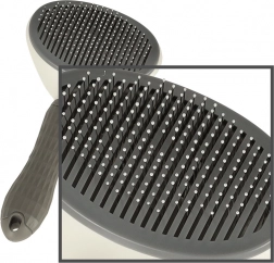 Ova četka opremljena je fleksibilnim zubima s okruglim završetkom, koji pružaju nježan masažni efekt i nježni su prema koži. Ergonomski držač olakšava dugotrajno korištenje bez umora. Želite najbolje za svog psa ili mačku i odaberite četku koja im nudi udobnu i učinkovitu njegu.