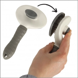 Redovitim češljanjem svog ljubimca osiguravate ne samo čistoću vašeg doma već i zdravlje krzna i kože. Četka ostavlja krzno glatkim i sjajnim zahvaljujući prirodnom rasporedu ulja duž cijele dlake. Samoočistivi mehanizam osigurava da nakon češljanja ne morate složeno uklanjati dlake. Dovoljno je pritisnuti gumb i krzno lako odlazi s četke.