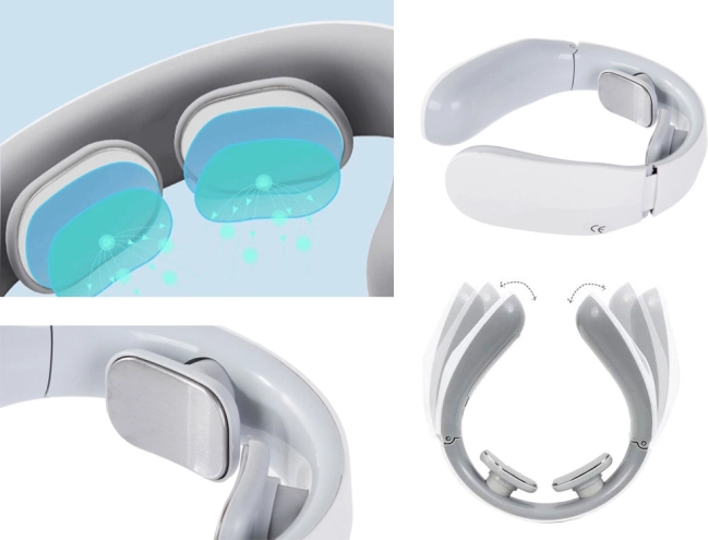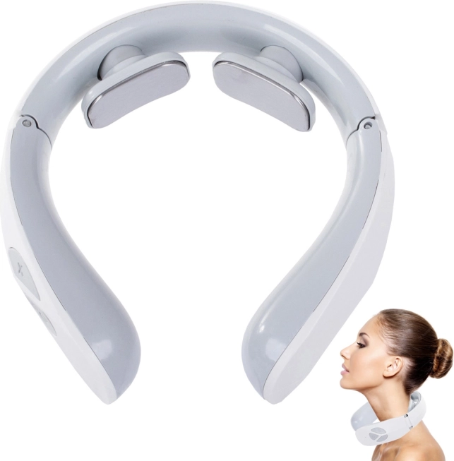 Masažni uređaj za vrat pruža učinkovitu pomoć kod bolova u vratu, ramenima i leđima stimulirajući i poboljšavajući cirkulaciju krvi. Uređaj nudi 12 programa s mogućnošću podešavanja jačine impulsa. Napaja se dva AAA baterijama koje su uključene u pakiranje.