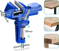 Univerzalni rotirajući škripac od čvrstog lijeva za radionicu i garažu. Nudi rotirajuću bazu od 360°, robustnu konstrukciju, integrirano nakovanj i pouzdano pričvršćivanje na ploču stola do cca 55 mm. Idealan za obradu metala, cijevi, tiskane pločice i druge materijale.
