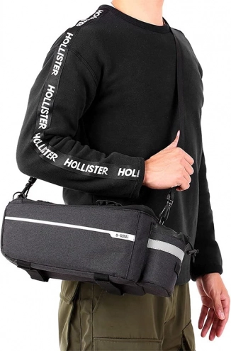 Ugradnja je brza i pouzdana zahvaljujući podesivim čičak-trakama koje odgovaraju većini nosača. Torba ima ojačane bočne stranice za bolju stabilnost tereta i vodootpornu površinu koja štiti sadržaj od kiše i prljavštine. U paketu je odvojivi rameni remen i gornja ručka, pa je lako prenosiva i izvan bicikla.