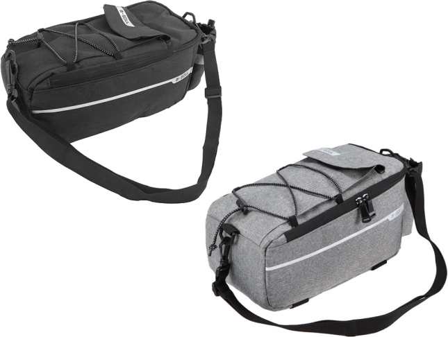 Univerzalna termo torba za bicikl za montažu na stražnji nosač idealna je za svakodnevno putovanje na posao i duže izlete. Toplinski izolirana glavna komora sigurno čuva hranu, piće ili odjeću, dok manji džepovi primaju sitnice poput ključeva, novčanika ili boce s vodom. Reflektirajući element duž ruba povećava vidljivost u sumrak i noću.