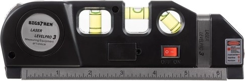 Laserska libela od brenda Bigstren sa ugrađenim metrom duljine 250 cm idealan je alat za precizno mjerenje i označavanje linija. Omogućuje istodobno određivanje horizontalnih i vertikalnih ravnina i prikladna je za profesionalnu i kućnu upotrebu.