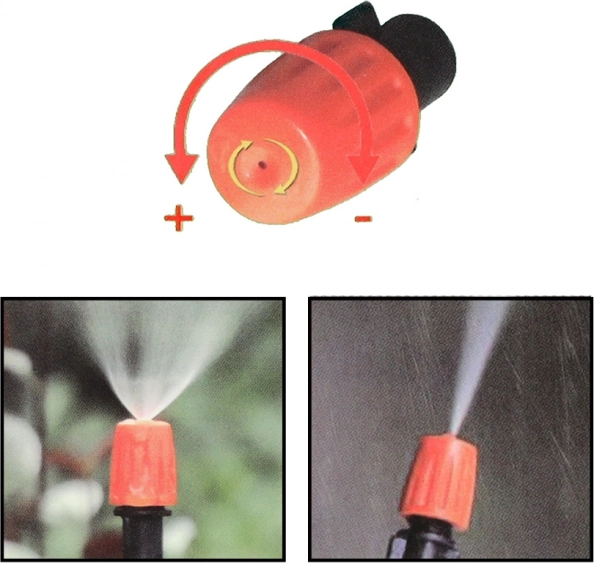 Zahvaljujući plastičnom sustavu mlaznica lako možete kontrolirati intenzitet magljenja i promjer magle, što omogućuje potpunu kontrolu nad mikroklimom vašeg vrta.<p><div>