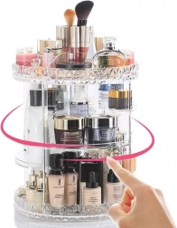 Ovaj univerzalni stalak s rotirajućom konstrukcijom nudi pregledno odlaganje kozmetike i nakita. Prozirni akril daje prostoru moderan izgled i omogućuje brzo pronalaženje željenog proizvoda. Zahvaljujući rotaciji od 360° sve vam je dostupno jednim okretom.