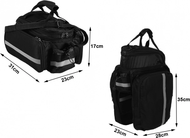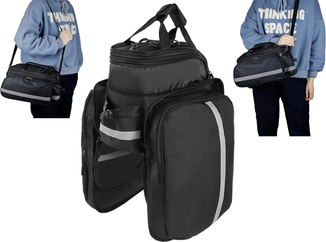 Za povećanje sigurnosti torba je opremljena reflektirajućim trakama i kišnom kabanicom koja štiti sadržaj i po lošem vremenu. Ukupni volumen torbe je približno 30 litara, što nudi dovoljno prostora za sve vaše biciklističke potrebe.