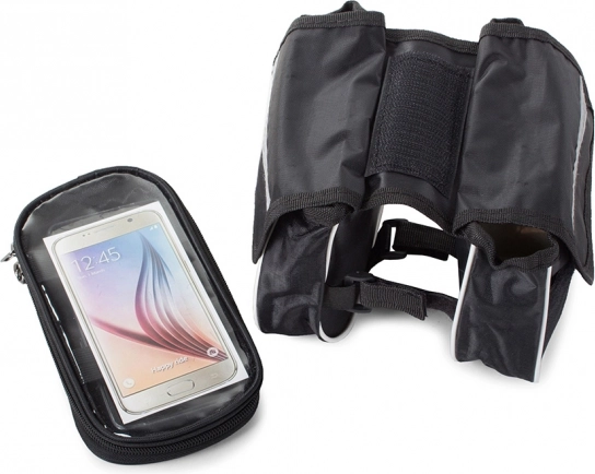 Ova torba za okvir bicikla je izrađena od izdržljivog materijala, što jamči njezinu dugotrajnost čak i pri zahtjevnom korištenju. Jednostavno korištenje mobilnog telefona tijekom vožnje osigurano je zahvaljujući prozirnoj prednjoj strani.