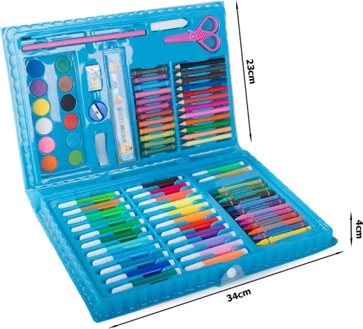 Kompletni likovni set u praktičnom kovčežiću sadrži sve što djeci i početnicima u umjetnosti treba za crtanje i slikanje: bojice, flomasteri, uljne pastele, akvarelne boje i korisne dodatke. Zahvaljujući 86 dijelova i preglednom rasporedu imat ćete sve pri ruci kod kuće i na putu.