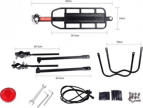 Univerzalni stražnji nosač za bicikl od kvalitetnog aluminija odličan je izbor za prijevoz bisaga, kupovine i radnih stvari. Aluminijska konstrukcija je čvrsta, lagana i otporna na koroziju, pa ne opterećuje bicikl i bez problema podnosi svakodnevnu upotrebu.