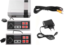 Retro mini konzola donosi klasične 8‑bitne igre u kompaktnom kućištu koje lako povezujete s TV‑om preko AV‑a. Uživajte u legendarnim platformerima, arkadama i akcijskim naslovima uz mogućnost igre u dvoje zahvaljujući dvama upravljačima. Dovoljno je priključiti i igrati – bez preuzimanja i bez složene instalacije.