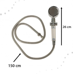Bez obzira imate li kadu ili tuš, ova tuš glava je neophodan dodatak vašoj kupaonici. Ugrađena turbina i brojni mali otvori osiguravaju izvrsnu kontrolu nad tlakom vode i štede vodu i vaš novac. Zahvaljujući bočnoj regulaciji protoka vode, možete lako podesiti tok prema svojim potrebama. Set također uključuje tuš crijevo i držač za jednostavno postavljanje na zid. Duljina crijeva omogućuje praktično korištenje, bilo pri osobnoj higijeni ili čišćenju tuša.