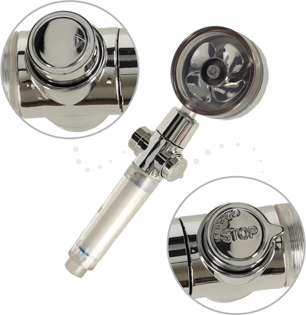 Elegantni srebrni dizajn savršeno se uklapa u bilo koji interijer kupaonice i lako se čisti zahvaljujući konstrukciji koja se brzo rastavlja i sastavlja. Glavne prednosti ovog proizvoda su štednja vode, poboljšani tlak vode te mogućnost trenutnog zaustavljanja protoka bez potrebe za manipulacijom s slavinom.
