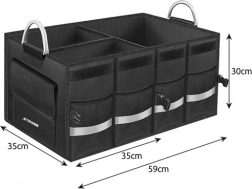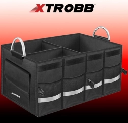 Velik, ojačan organizator za prtljažnik XTROBB pomaže zadržati teret sigurno na mjestu i imati sve pri ruci. Glavnu komoru možete podijeliti na do tri dijela, pa će alat, autokozmetika, kabeli i sitnice ostati pregledno organizirani i neće se pomicati tijekom vožnje. Zatvorivi poklopac na čičak štiti sadržaj od prašine i osigurava uredan izgled prtljažnika.