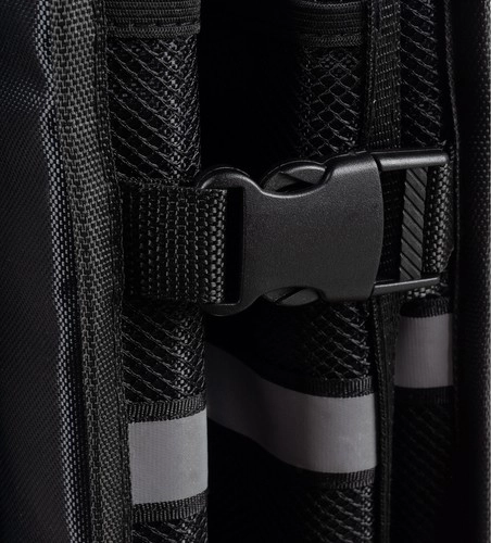 Robusne metalne ručke pretvaraju organizator u praktičnu torbu. Bez prepakiranja izvadite sve odjednom i udobno prenesete, a reflektirajući elementi povećavaju sigurnost.