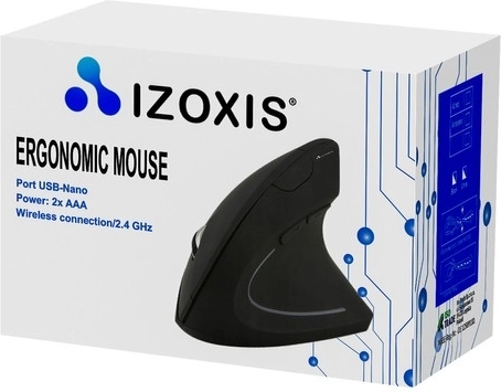 Vertikalni miš IZOXIS osmišljen je za zdraviji način rada za računalom. Prirodni hvat minimalizira uvrtanje podlaktice i smanjuje pritisak na zapešće, pomažući spriječiti umor i tegobe poput sindroma karpalnog tunela. Kompaktni USB nano prijamnik jamči brzu i stabilnu bežičnu vezu s dosegom do 10 m.